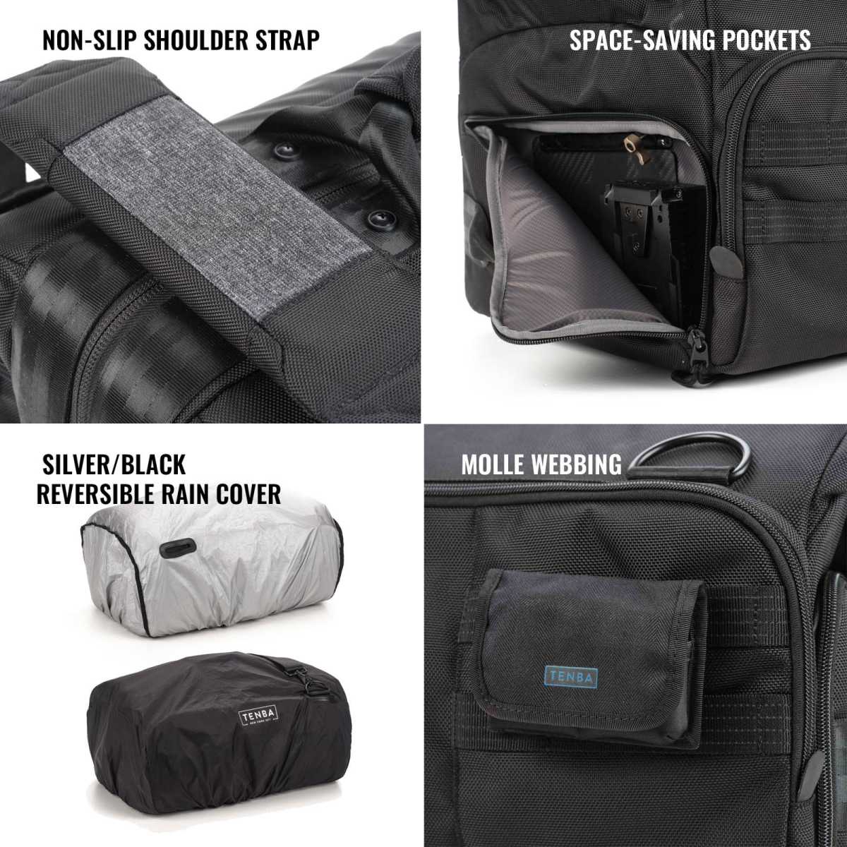 - De meegeleverde gewatteerde wraps houden lenzen en accessoires veilig.