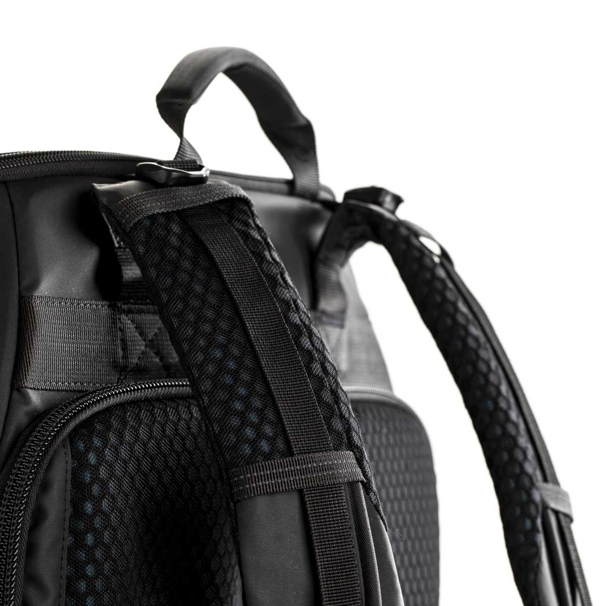 - De dubbele borstriemen verdelen het gewicht beter.