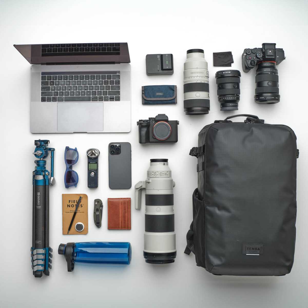- 1 tot 2 spiegelloze of DSLR-camera’s met 7 tot 9 lenzen, inclusief een camera/lens-combo tot 16,5 inch (42 cm) lang. Geschikt voor lenzen zoals Sony 200-600mm, Canon 200-400mm/200-800mm, Nikon 180-600mm, Tamron/Sigma 150-600mm.