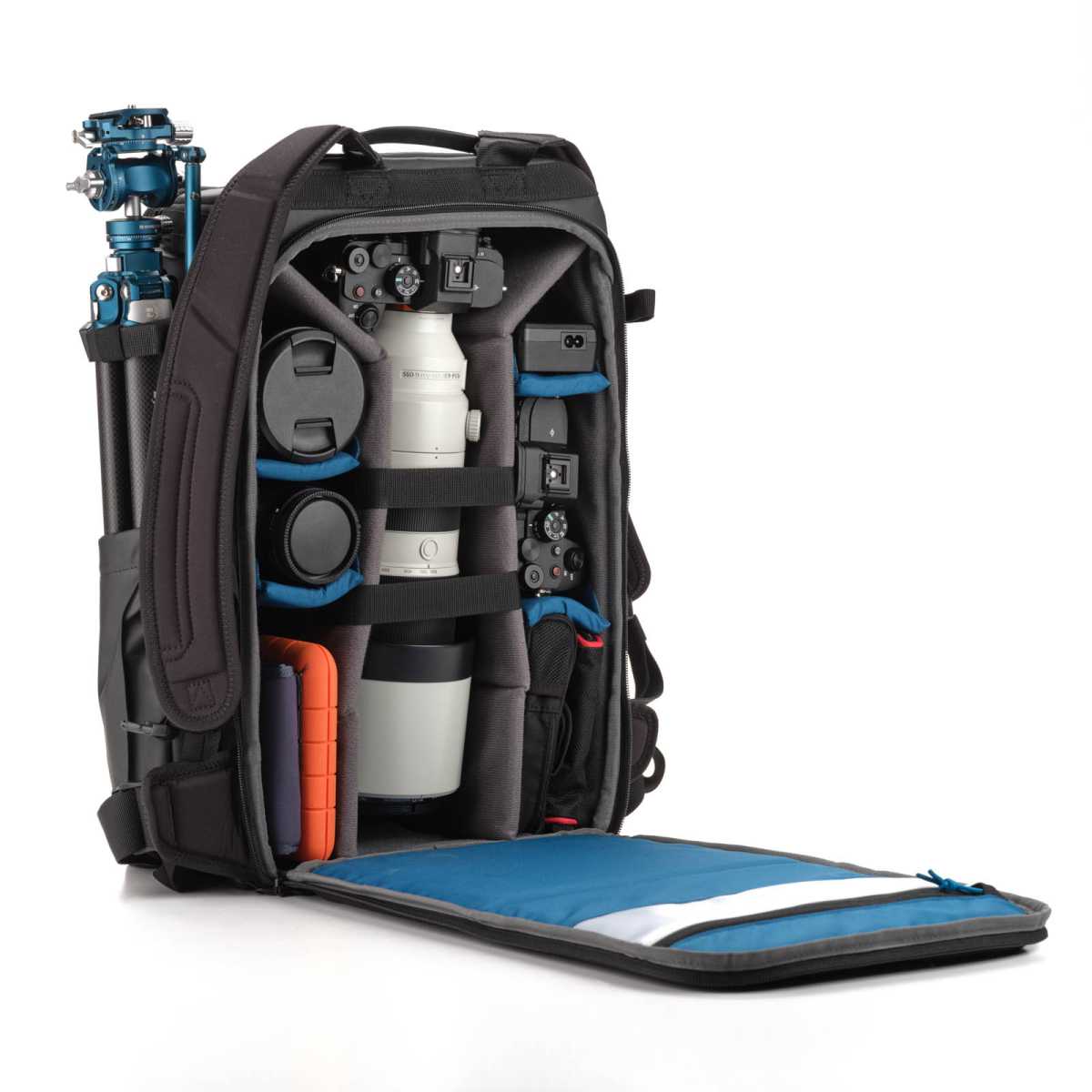 - Ruimte voor telelenzen tot 47cm lang zoals de Canon 200-400mm en diep genoeg voor camera’s met grip zoals de Nikon Z9